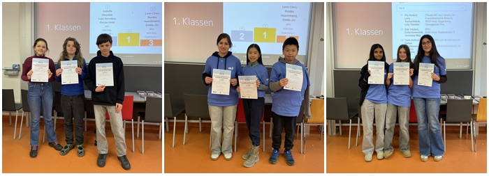 Weitere Stockerlplätze gab es durch Emilie J. (2d), Lorenz L. (1a) und Xingjian X. (7b), die jeweils einen hervorragenden 2. Platz belegten.