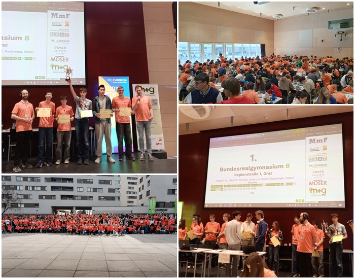 Nach intensiver Vorbereitungszeit wurde der Wettbewerb heuer in Graz in deutlich größerem Rahmen durchgeführt und zog mit über 60 Teams und mehr als 300 teilnehmenden Schüler:innen aus der gesamten Steiermark und darüber hinaus ein beeindruckendes Teilnehmerfeld an. An der Organisation war auch unser Lehrer David Präsent beteiligt, der im Team des Veranstalters MmF (Mathematik macht Freude; Uni Graz & Uni Wien) als Hauptorganisator mitwirkte und so zum Gelingen des Wettbewerbs beitrug.