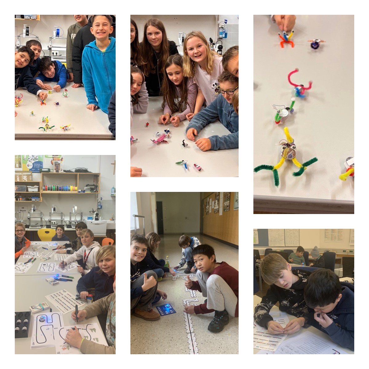 Die Kinder der 1. und 2. Klassen entdecken die Welt der kleinen Roboter. Es wird gebaut, gebastelt und programmiert.