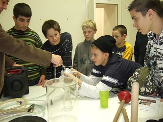 Zuerst bekamen wir spannende Erklärungen über die Magdeburger Halbkugeln. Innen wurde die Luft abgesaugt, um ein Vakuum herzustellen und wir schafften es nicht, diese Halbkugeln auseinander zu ziehen. Wir probierten dann auch gleich ein ähnliches Experiment aus, wie z.B. zwei Saugnäpfe aneinander zu drücken, so dass innen ein Vakuum entstand. Die versuchten wir dann auseinander zu ziehen, was auch leicht war, weil die Ränder ziemlich rau waren und Luft durchließen.