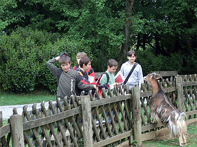 Danach gingen wir zur Fütterung der Siamangs, einer Gibbonart. Dort kamen drei große Aff en und ein Baby-Affe aus ihrem Affenhaus heraus und holten sich das Futter, das Wärter auf einem Baum versteckt hatten. Und nun auf in den in den eurasischen Teil, wo wir einige Huft iere wie die Davidhirsche oder Trampeltiere bewunderten. Mit wenigen Schritten gelangten wir schließlich nach Amerika. Dort trafen wir Capybaras, Flachlandtapire, große Soldatenaras, viele Kapuzineraff en, auch Mähnenwölfe, Nandus, Polarwölfe, einen Puma und Timberwölfe.