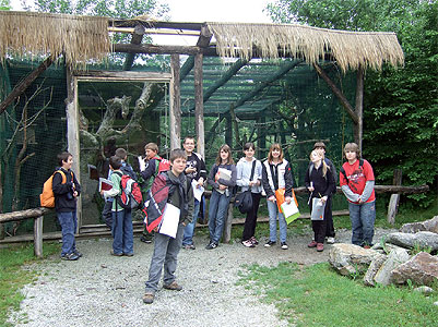Die kurvenreiche Busfahrt machte einigen von uns zu schaffen und so mussten wir einige Zwischenstopps einlegen, bis wir die verschiedenen Kontinente, in die der Tierpark aufgeteilt ist, erforschen konnten. Bevor wir jedoch in den Park gingen, wurden Fragebogen an uns ausgeteilt. Der erste Kontinent, den wir besuchten, war Afrika. Dort sahen wir typische Tiere wie Löwen, Dscheladas, Geparden, Graupapageien, Grüne Meerkatzen, Alexandersittiche, Mandrillen, Mona-Meerkatzen und Nilgänse.